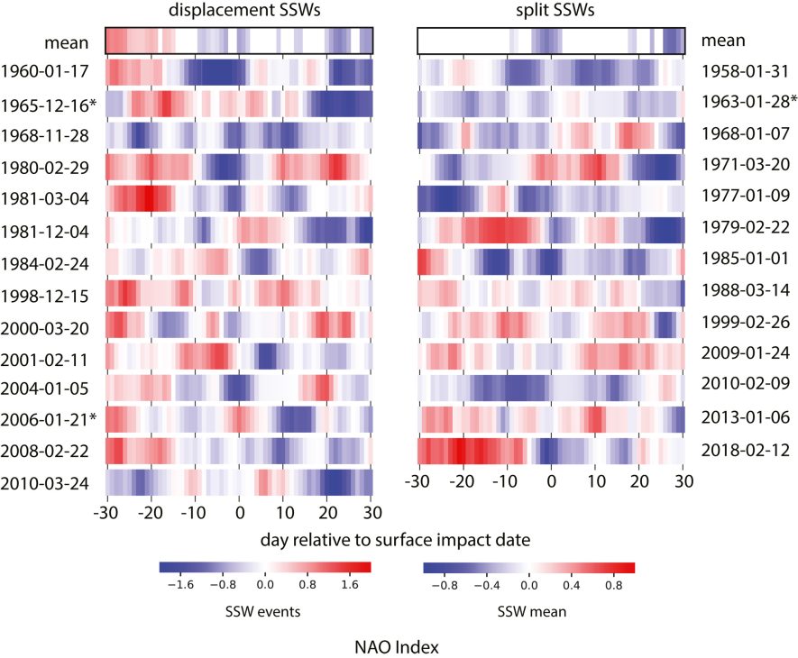 Študija tudi diskutira omejitve: algoritem je empiričen, ne kaže vzročnosti, vzorec je majhen (39 dogodkov), približno 10% je občutljivih na parametre. Vplivi niso vedno enaki – približno polovica SSW ne vpliva močno na površje (po Karpechku et al., 2017). Razlike med tipi so majhne v NAO, a večje v drugih vzorcih, kot je vzhodnoatlantski vzorec. Variabilnost lahko vpliva El Niño/Southern Oscillation (ENSO) – med El Niñom so SSW pogostejši in močnejši – ali predhodni bloki (npr. Ural ali Grenlandija).