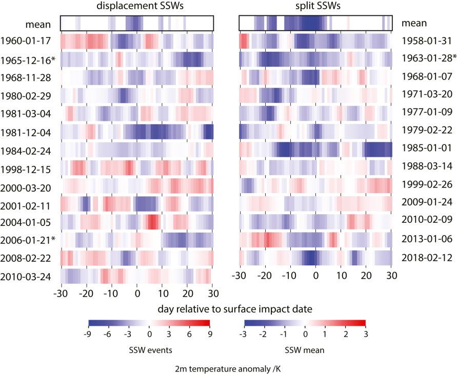 Prav tu nastopi omenjena študija iz leta 2021. Uporabili so podatke iz reanaliz ERA-40 in ERA-Interim od leta 1957 do 2019, ki zajemajo 39 SSW dogodkov. Njihov glavni prispevek je razvoj empiričnega algoritma za sledenje navzdol (downward tracking), ki prvič omogoča oceno časa površinskega vpliva za vsak posamezen SSW dogodek, namesto da bi se zanašali samo na datum začetka v stratosferi (centralni datum).