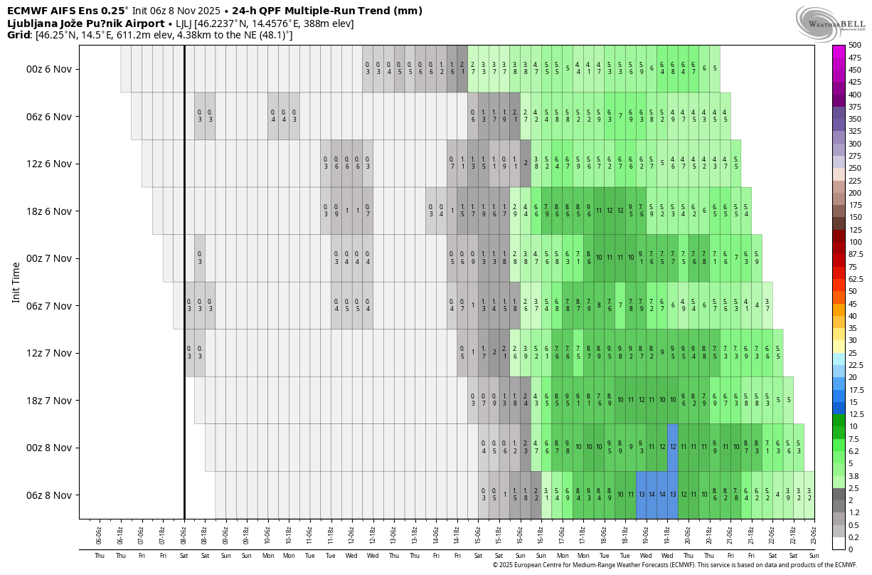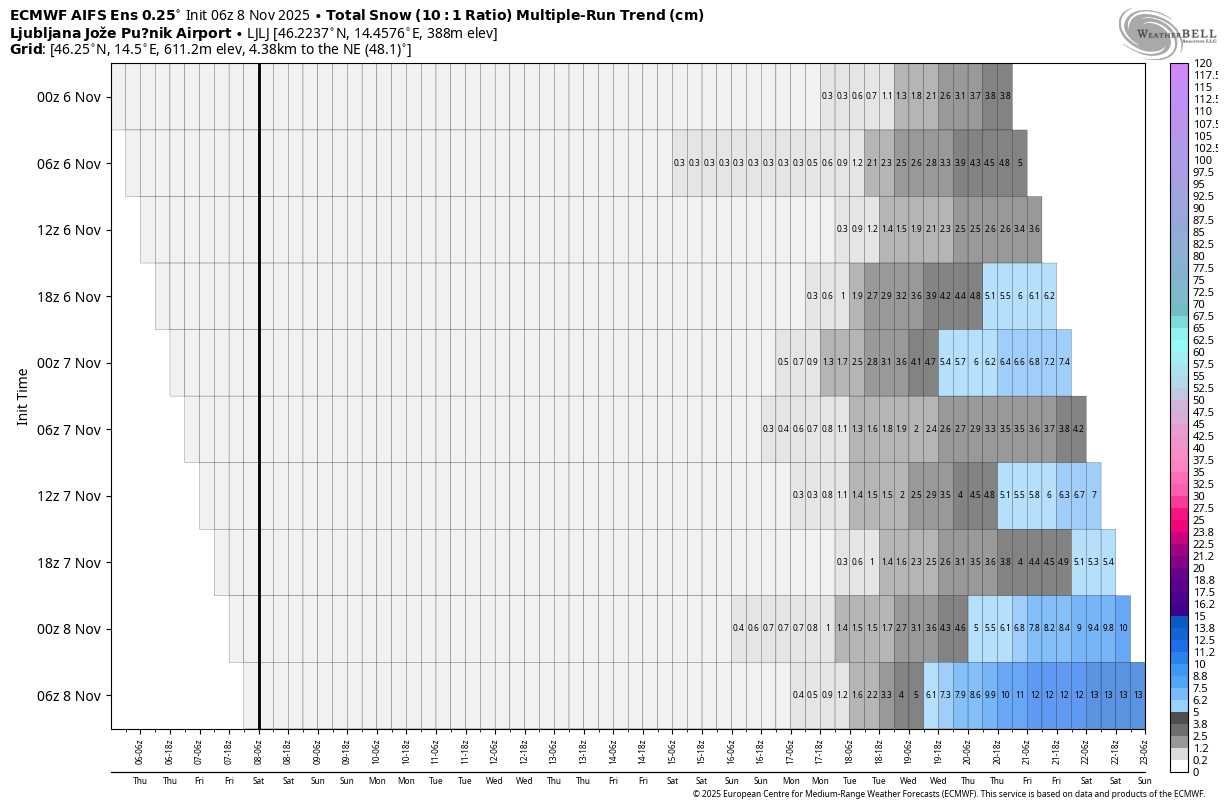 Ta prihod bi lahko prinesel daljše obdobje nestanovitnega vremena. Kajti za njim je videti s severa vdor polarnega zraka ob krepitvi grebena nad severnim delom Atlantika. Če bo pri prvem meja sneženja še razmeroma visoko, bi lahko v nadaljevanju bila meja sneženja bistveno nižje. Nad severnim delom Sredozemlja bi se lahko dalj časa obnavljal ciklon.