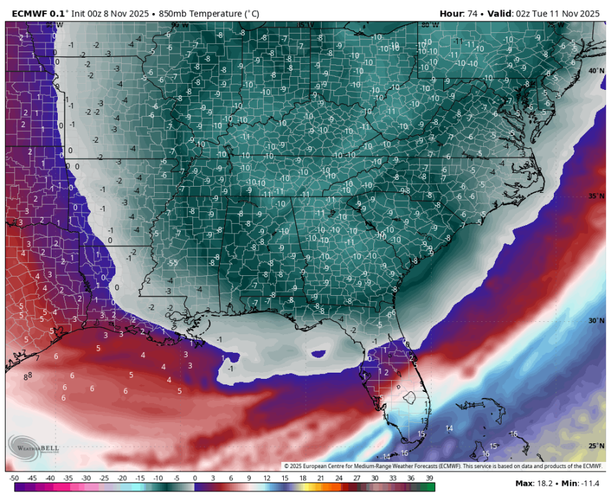 V naslednjih dneh bo vzhodni del ZDA doživel ekstremen vdor polarnega zraka, ničta izoterma se bo spustila vse do Floride.