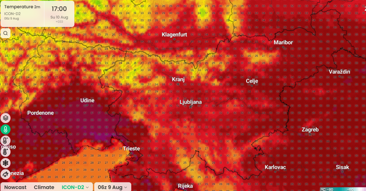 Začel se je drugačen tip vremena, kot smo ga gledali v zadnjem mesecu, bolj značilen za poletne dni. Lahko bomo govorilo po dolgem času o vročinskem valu. Razvoj vremena se odvija kar po pričakovanjih, icon se je malo prenaglil z nevihtnim dogajanjem v ponedeljek nad območjem Alp. Nad pet dni mu ne gre najbolj zaupati, tu prednjači evropski model ecmwf s klasičnim in AI izračunom. Nad nami je v višinah izjemno topel zrak, na Kredarici je bila podobna temperatura kot drugod po nižinah. Od uradnih postaj je bilo v Ratečah, Slovenj Gradcu in v Postojni hladneje kot na Kredarici. Jutri se bo s pomikom višinske doline čez Baltik greben s toplejšim zrakom premaknil proti Severnemu morju. V prizemlju pa se bo precej ogrelo, še najbolj na Primorskem, kjer bodo temperature lahko dosegle +38 °C, na skrajnem severovzhodu pa bo kako stopinjo manj.
