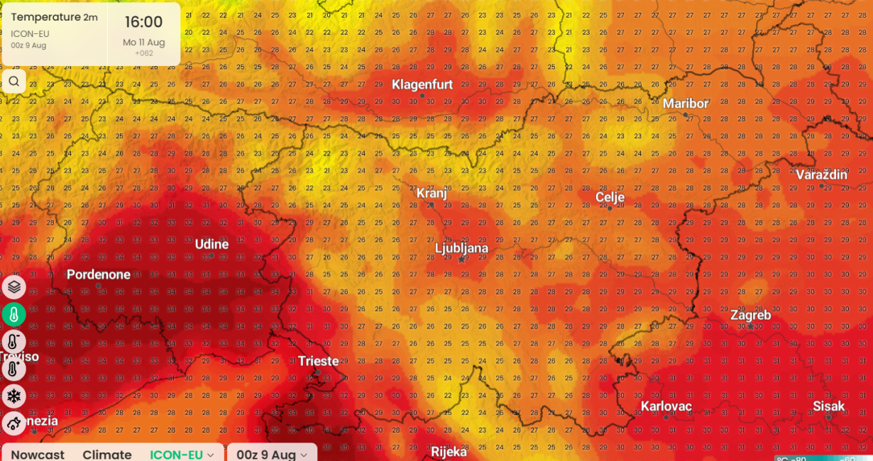Višek vročine bo jutri(vir imweather)