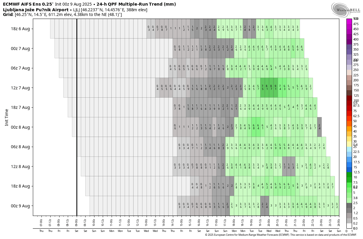 Po AIFS je videti spremembo z nedeljo oz. ponedeljkom z večjo možnostjo padavin