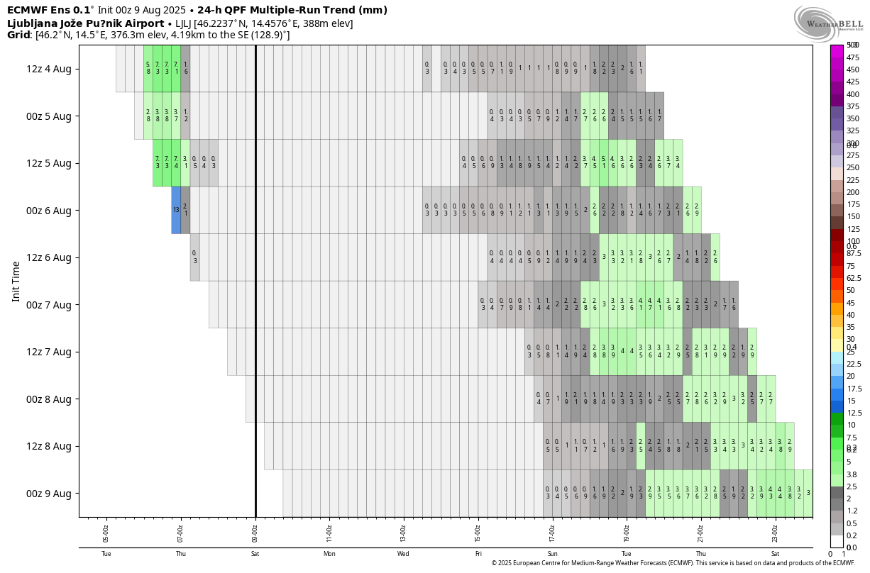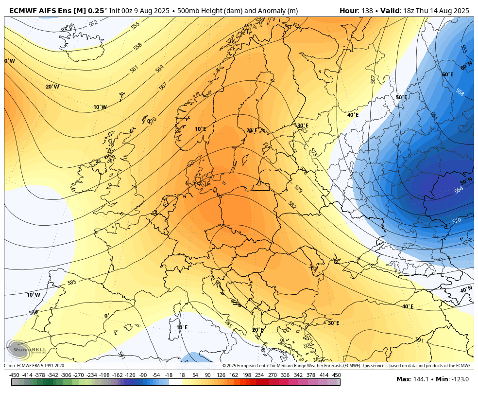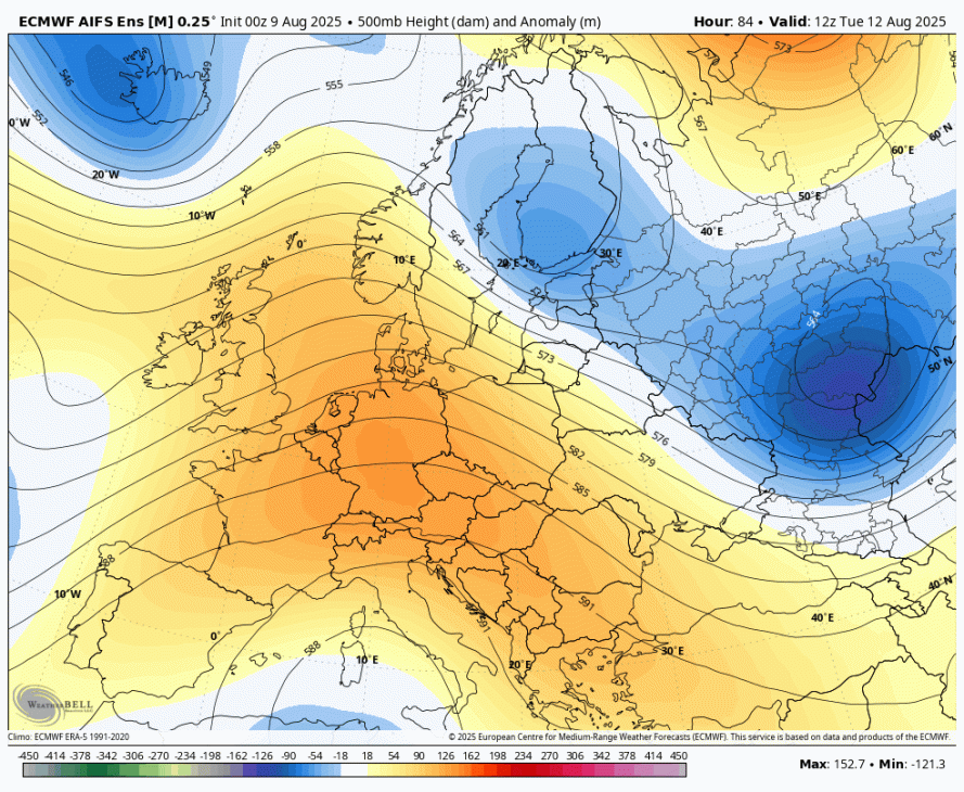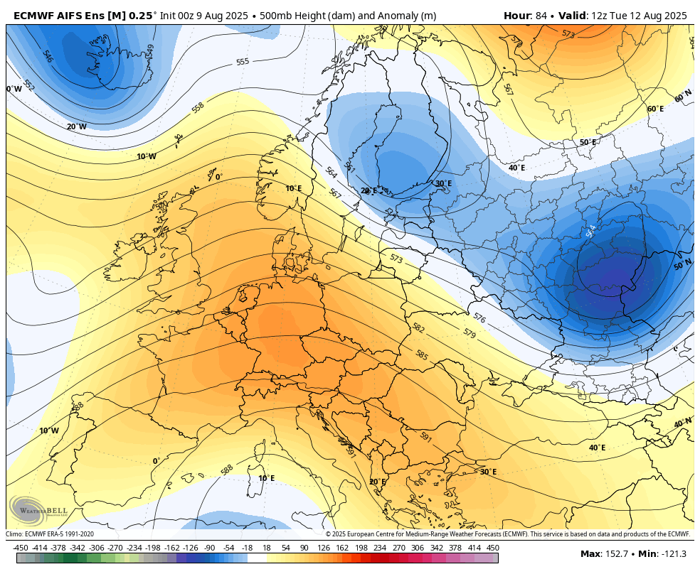 Je pa precej težko napovedljivo vse skupaj, ampak počasi je vendarle videti na skupinskih izračunih, preklop v bolj zahodni tip vremena z več atlantskimi motnjami, ki bi prekinile tole kar dolgo obdobje suhega in stabilnega vremena. Verjetno se bo to obdobje zaključilo okoli nedelje 17.avgusta.