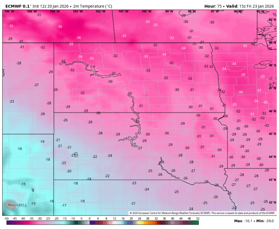 V Kanadi pa marsikje še precej nižje. Zaradi premika curka proti jugu se nad osrednjimi in vzhodnimi deli države krepi kontrast med hladnim in vlažnim zrakom, kar prinaša obilno sneženje, leden dež in zmrzal od Teksasa in Oklahome vse do Velikih jezer in severovzhoda. V začetku prihodnjega tedna bodo na Velikih jezerih možne še dodatne snežne pošiljke.