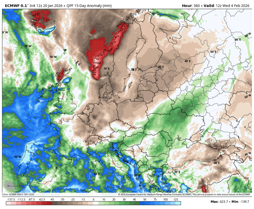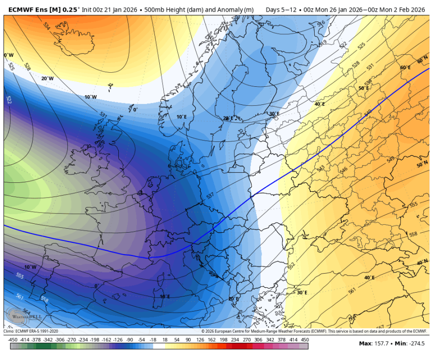 V začetku februarja kaže, da se bo ta vpliv MJO nadaljeval, zato lahko računamo na podoben vzorec vsaj v prvi polovici meseca – nemirno, vetrovno in mokro vreme nad zahodno in južno Evropo.