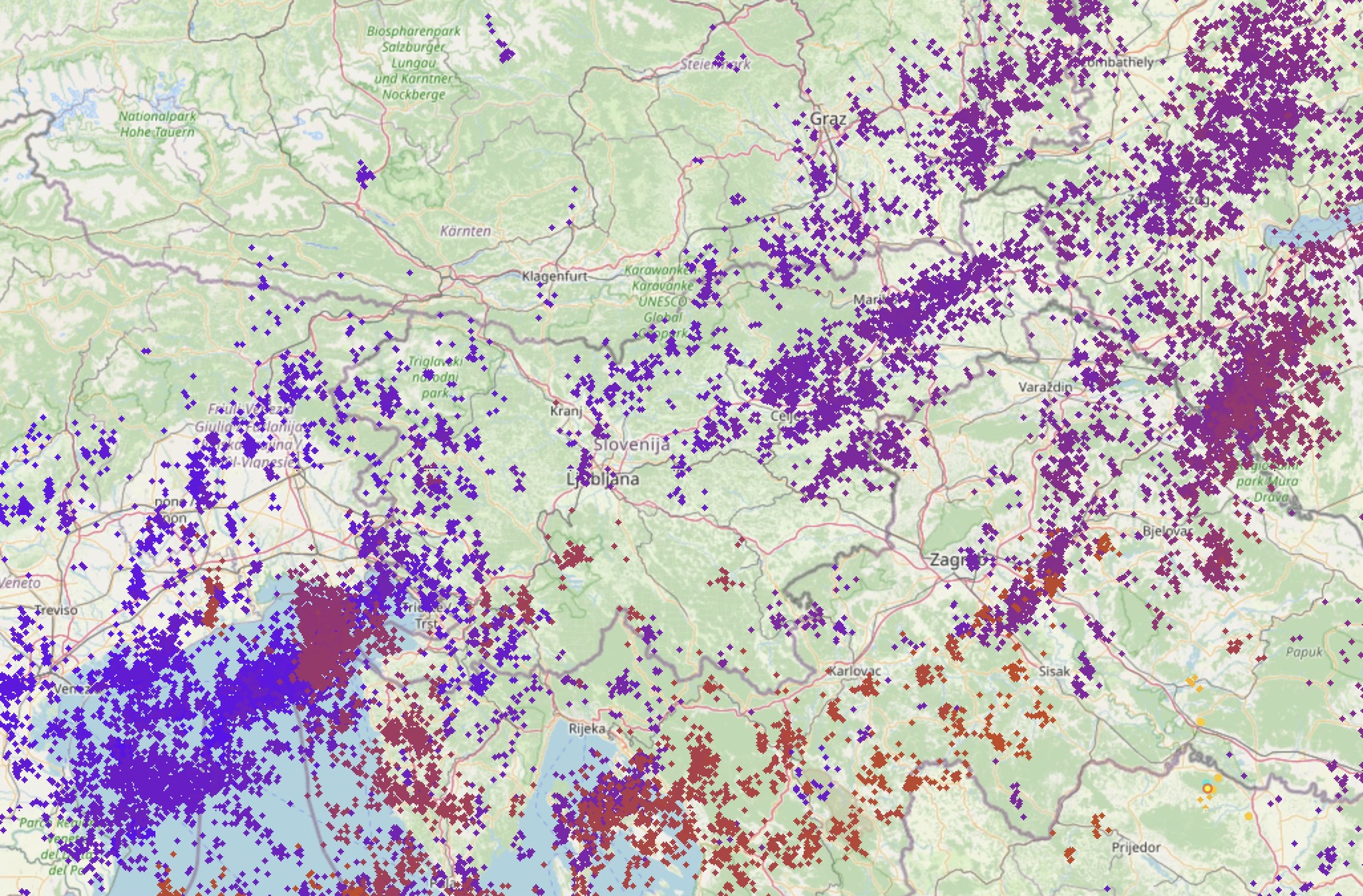 Primer udarov strel preko sistema blitzortung, ki je dosegljiv na strani lightningmaps. Tukaj se lahko tudi datumsko preveri določene udare, za potrebe zavarovalnic