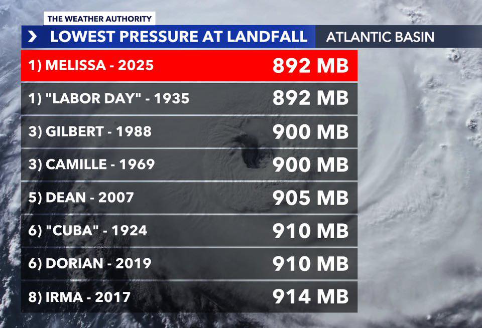 Melissa je najmočnejši orkan, ki je kadarkoli dosegel kopno v Atlantskem bazenu (izenačen z orkanom ob prazniku dela leta 1935). To je nekaj izjemno redkega za Atlantski ocean – dogodek, ki bo zagotovo zapisan v zgodovino in si ga bomo zapomnili še dolgo.