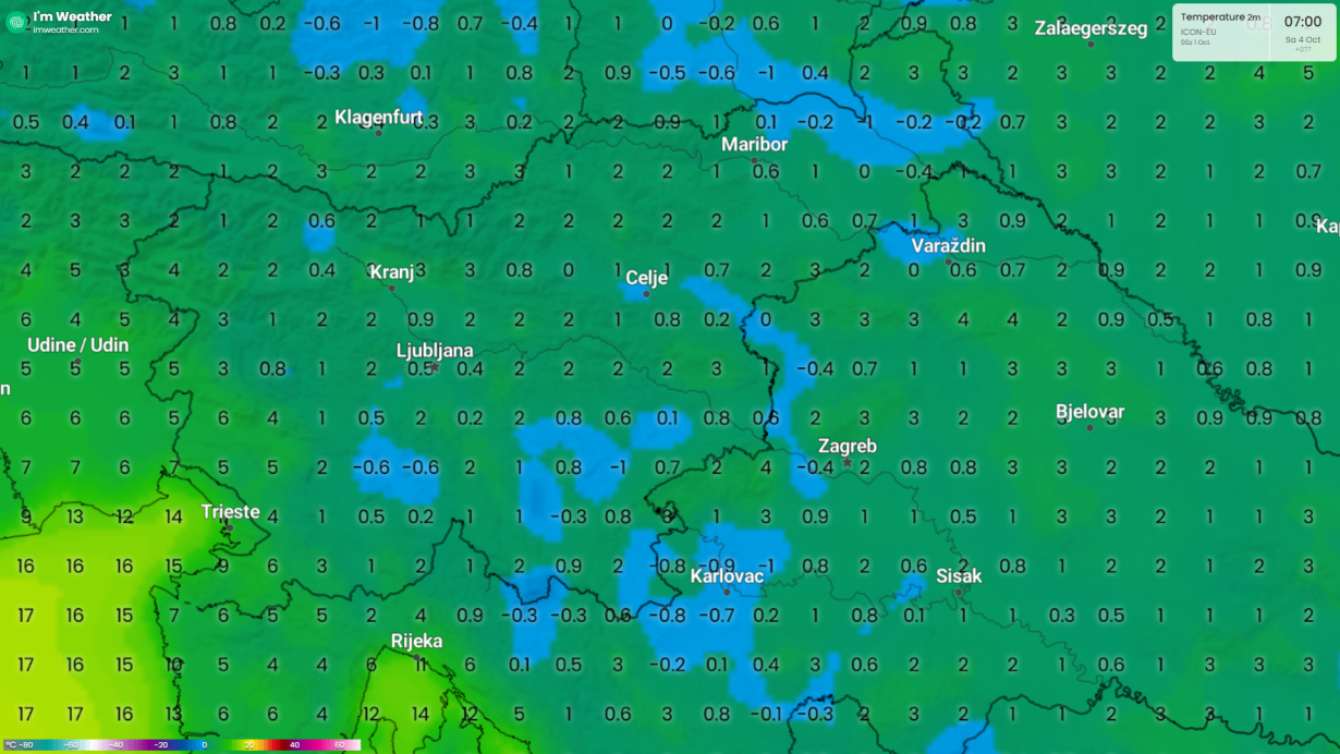 Predvidene temperature v soboto zjutraj(vir imweather)
