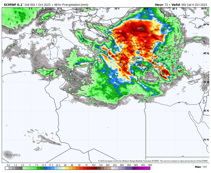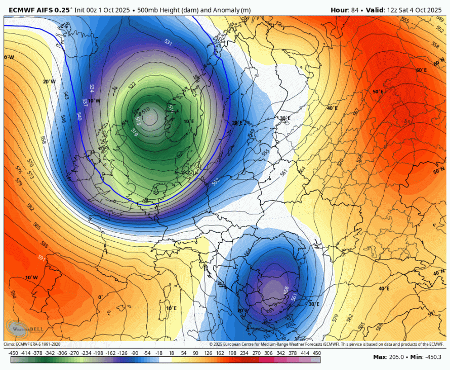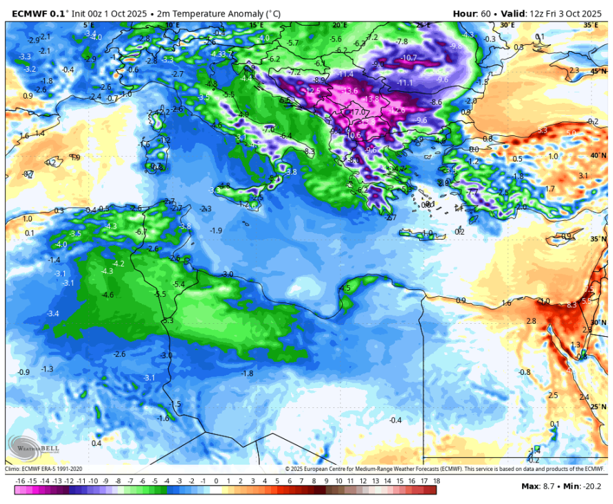 V teh dneh poteka prenos zelo hladnega zraka iz Rusije proti vzhodni Evropi in Balkanu. Največje temperaturne anomalije bodo nastale na Balkanu, kjer bo ponekod več kot 20 stopinj hladnejše od dolgoletnega povprečja. Jutri in v petek bo padla tudi večja količina padavin, lokalno verjetno čez 150mm v 48 urah.