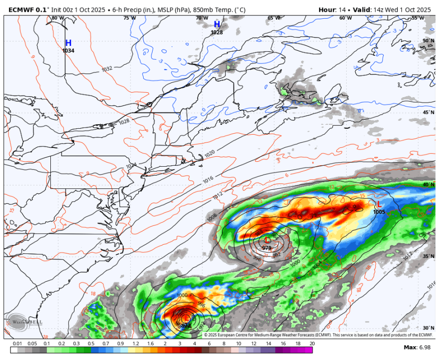 Dodatno zapletata situacijo dva tropska sistema — imenovana Humberto in Imelda — ki sta trenutno intenzivna (ocenjeno na stopnjo orkanskega sistema 1. kategorije) in kažeta smer proti vzhodnim delom atlantskega bazena oz. Evropi. Njun dinamični in termosferski vpliv lahko preko sprememb v amplitudah zahodnih vetrov in položaja višinskih grebenov privede do zajetnejših odstopanj v evropskih sinoptičnih razmerah. Zaradi takšnih medsebojnih interakcij atmosferskih sistemov bodo izračuni v naslednjih ciklih verjetno še naprej prikazovali povečano razpršenost scenarijev — to pomeni, da so napovedi za konec tedna še razmeroma nezanesljive.