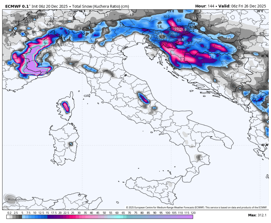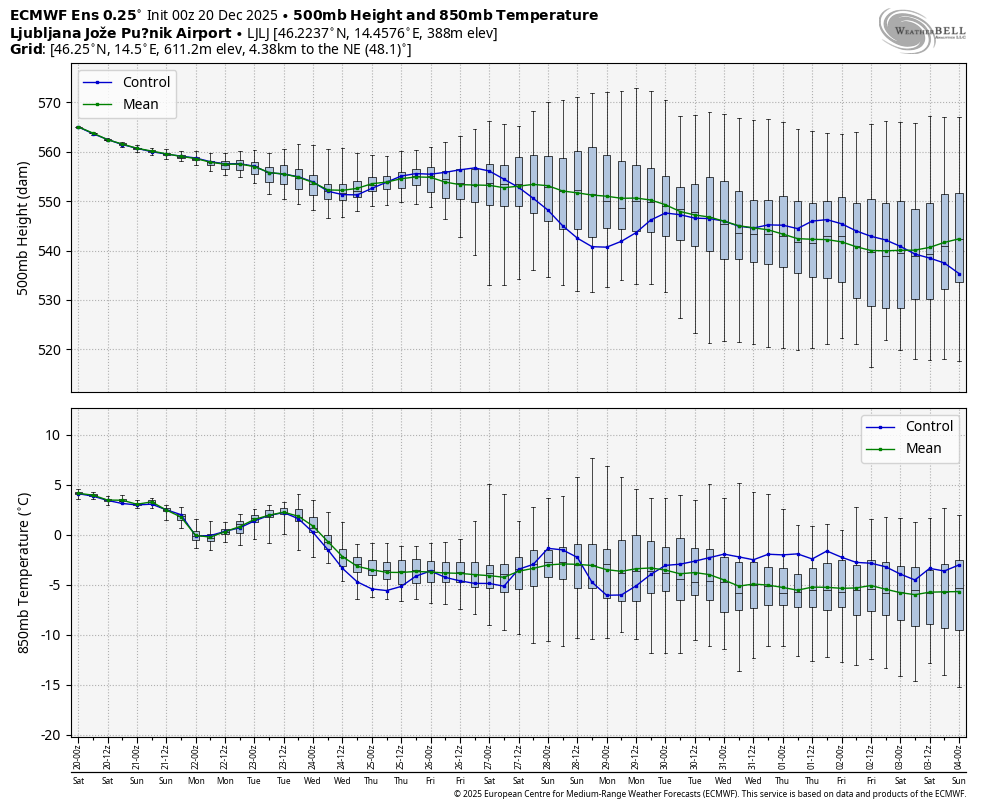 Temperature bodo večino tega obdobja med -3 °C in -6 °C na 850mb, to je mediana, lahko pa bodo odkloni precej večji
