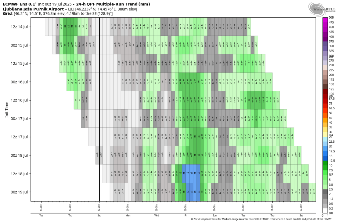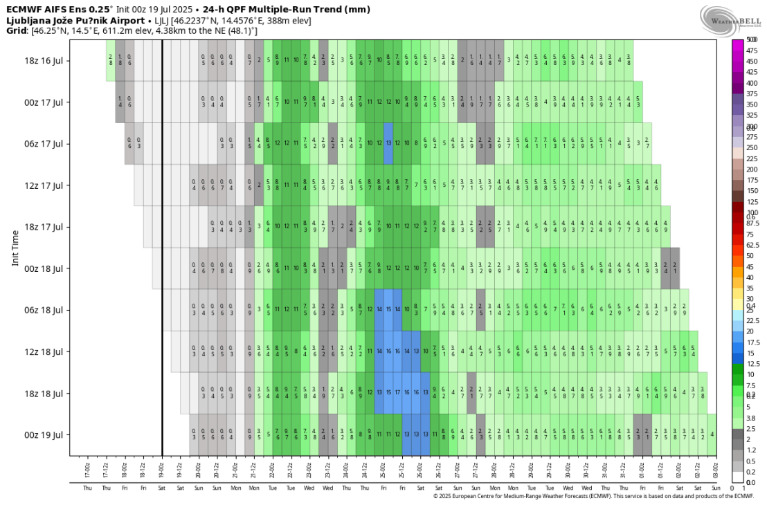 Predvidoma bodo učinki te faze vidni do začetka avgusta. Čeprav trenutne razmere niso šolski primer, saj modri okvirji na karti ne kažejo visoke statistične verjetnosti, se kljub temu pričakuje, da do začetka avgusta vročinskih valov, ki bi bili značilni za moderno poletno obdobje, ne bo. Obdobje med 15.julijem in 15.avgustom je statistično najbolj vroče v poletju.