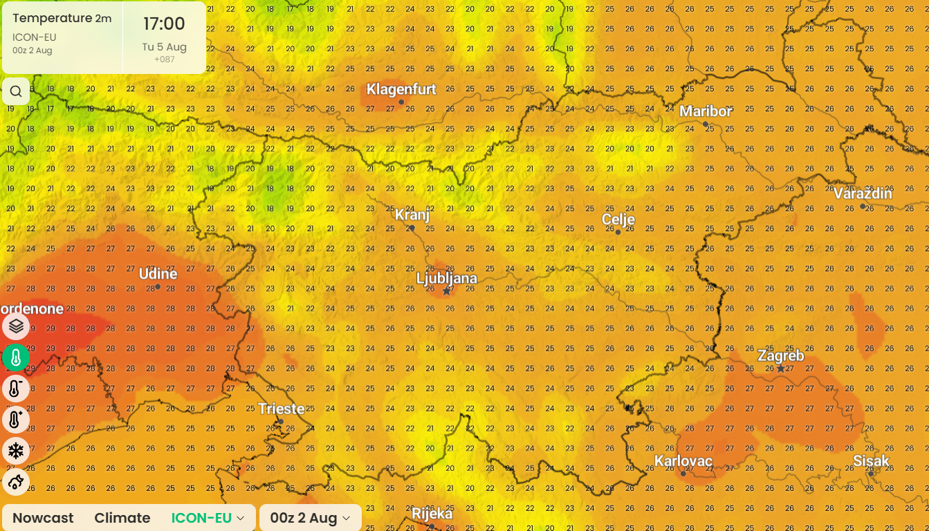Predvidene temperature od petka naprej bodo večinoma presegale +30 °C in se ponekod približale lahko +35 °C.