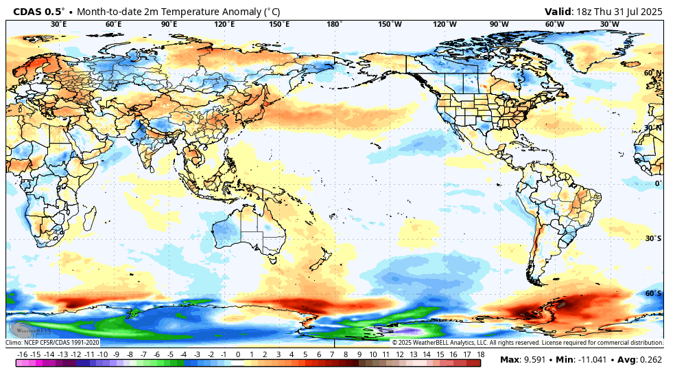V letošnjem juliju je bila globalna temperatura še nižja, odklon je znašal +0,262 °C. Največji odklon je bil tokrat v Skandinaviji, kjer so imeli zelo toplo obdobje, ki še traja. Pravzaprav zaznavamo trend ohlajanja od februarja naprej, to je najhladnejši julij po letu 2020, podobno kot v Sloveniji.