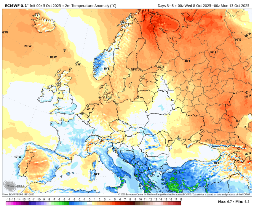 Hkrati pa se bo nad Grenlandijo okrepil soliden greben(spust AO in NAO), tole so povsem zimske situacije in vprašanje je, kaj se bo zgodilo z oktobrom na koncu. Zaenkrat nič ne kaže, da bi bil posebej topel, verjetno bo šel po oktobru 2021.