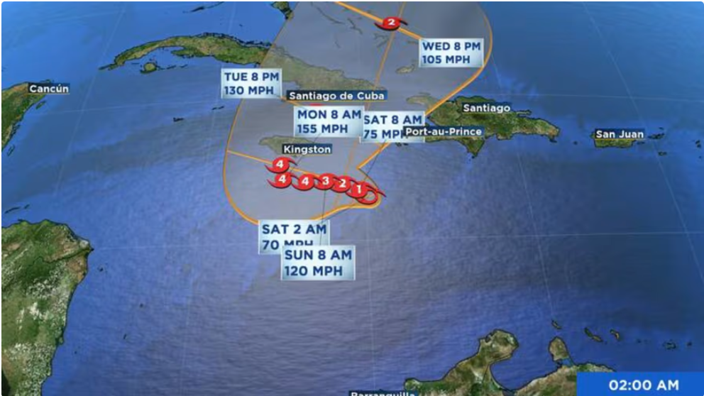 Počasno gibanje proti severozahodu se pričakuje do nedelje zvečer, v ponedeljek in torek pa se bo obrnilo proti severovzhodu, pred Jamajko naj bi postala orkan četrte stopnje