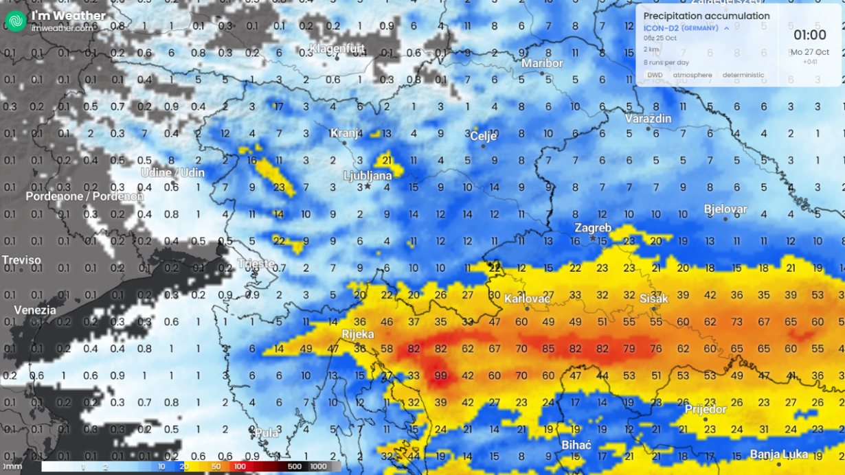 Glavnina padavin bo jutri južneje od nas(vir imweather)