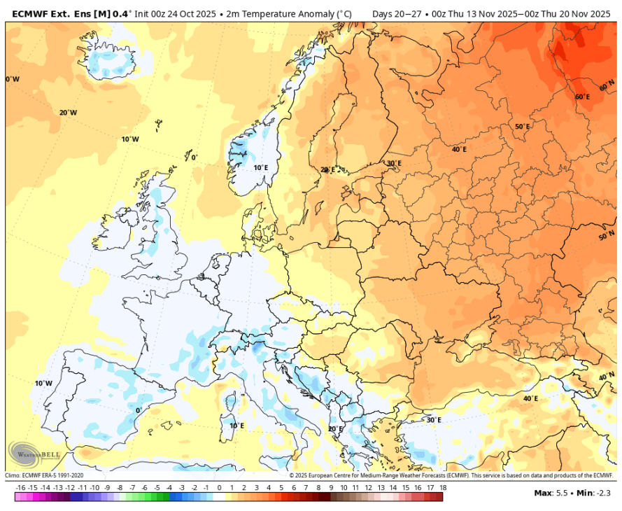 Predvidene temperaturne anomalije v drugi novembrski dekadi