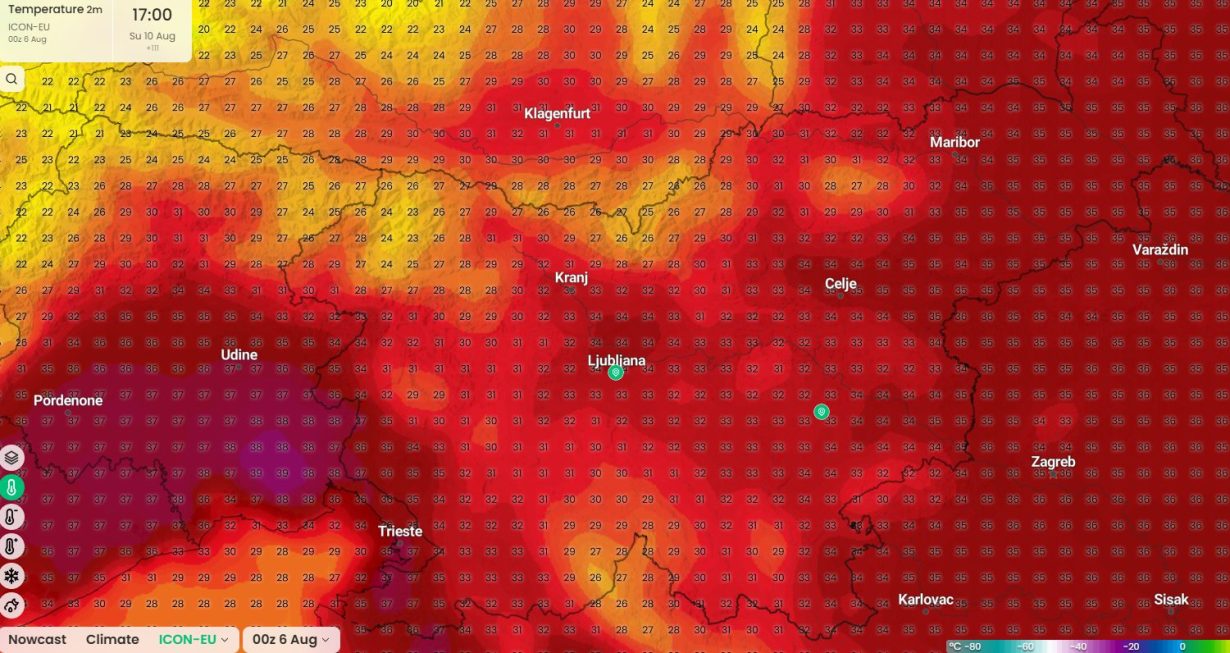 V soboto bo sončno in vroče, najvišje temperature bodo med 29 °C in 35 °C.