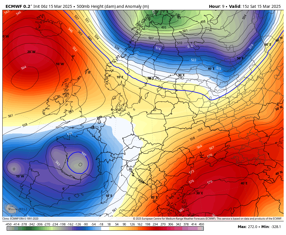 Jutri pričakujemo postopno slabitev tega ciklonskega sistema, saj se bo od severozahoda nad območje Alp začelo krepiti območje visokega zračnega pritiska. Visoki tlak bo s suhim in stabilnim zrakom počasi izrinil ciklogenezo proti severnemu delu Atlantika, hkrati pa bo spremenil smer vetra. Do večera se bo v višinah veter obrnil v severno smer, kar bo omogočilo vdor hladnejšega zraka iz severovzhoda. V noči na ponedeljek nas bo prešla še hladna fronta, ki bo prinesla razmeroma nizko mejo sneženja.