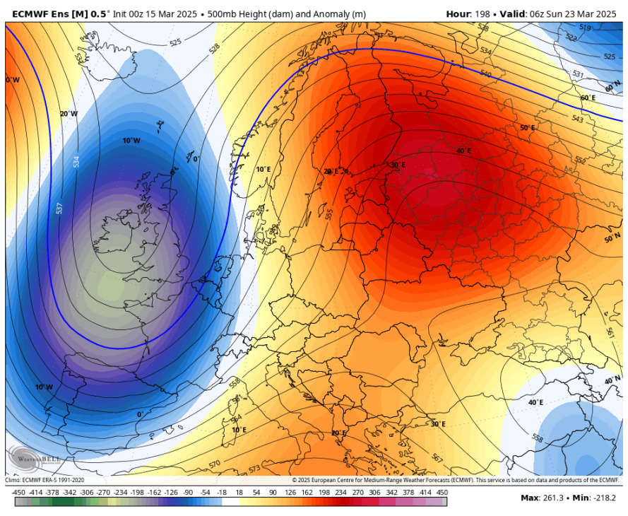 Naslednje dni se bo nad Portugalsko in Španijo začelo oblikovati novo ciklonsko območje, ki izvira iz temperaturnih kontrastov med hladnim atlantskim zrakom in toplim celinskim ozračjem nad Iberijskim polotokom. Ta nizkotlačni sistem bo sprva aktiviral močno konvekcijo ob zahodni obali Portugalske, kjer bo interakcija hladnega oceanskega površja s toplim celinskim zrakom sprožila obsežno dviganje vlažnega zraka. V srednjih in višjih atmosferskih plasteh bo prevladoval zahodni do jugozahodni tok, ki bo ciklogenezo potiskal proti severovzhodu v smer Biskajskega zaliva. Ob dosegu zaliva (sredi prihodnjega tedna) se bo sistem dodatno poglobil zaradi tople morske podlage in podpore polarnega frontnega jet toka, ki omogoča hitrejšo divergenco zraka v višinah. To poglabljanje bo spodbudilo razvoj frontalnega sistema z izrazitim toplotnim gradientom med hladnim atlantskim zrakom na zahodu in vlažnim sredozemskim toplotnim ozračjem na vzhodu.