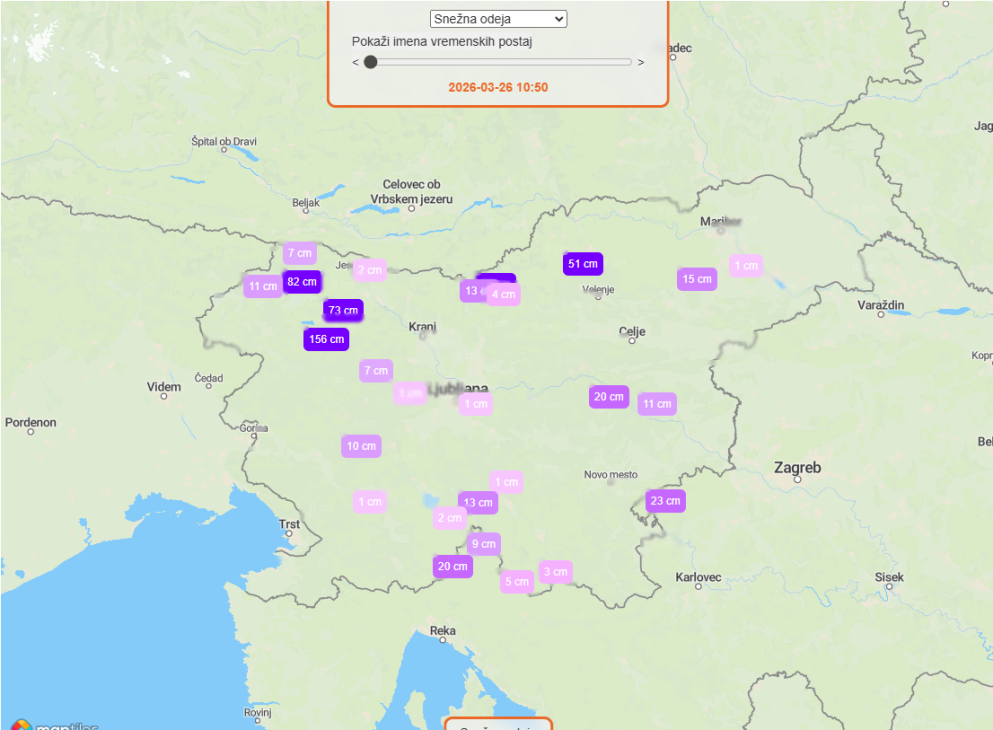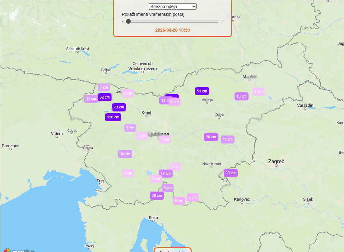 Ponekod na Notranjskem je do jutranjih ur zapadlo približno 10 centimetrov+ snega. Tudi Rogla beleži več kot 20 cm novozapadlega snega. Močni sunki burje so ponekod presegli hitrost 100 km/h, severni veter pa se bo dopoldne še dodatno okrepil. Zaradi kombinacije snega in vetra že prihaja do težav v prometu. Opozorilo Agencije za okolje ostaja v veljavi – za sever države velja rdeča stopnja, za jug pa oranžna.