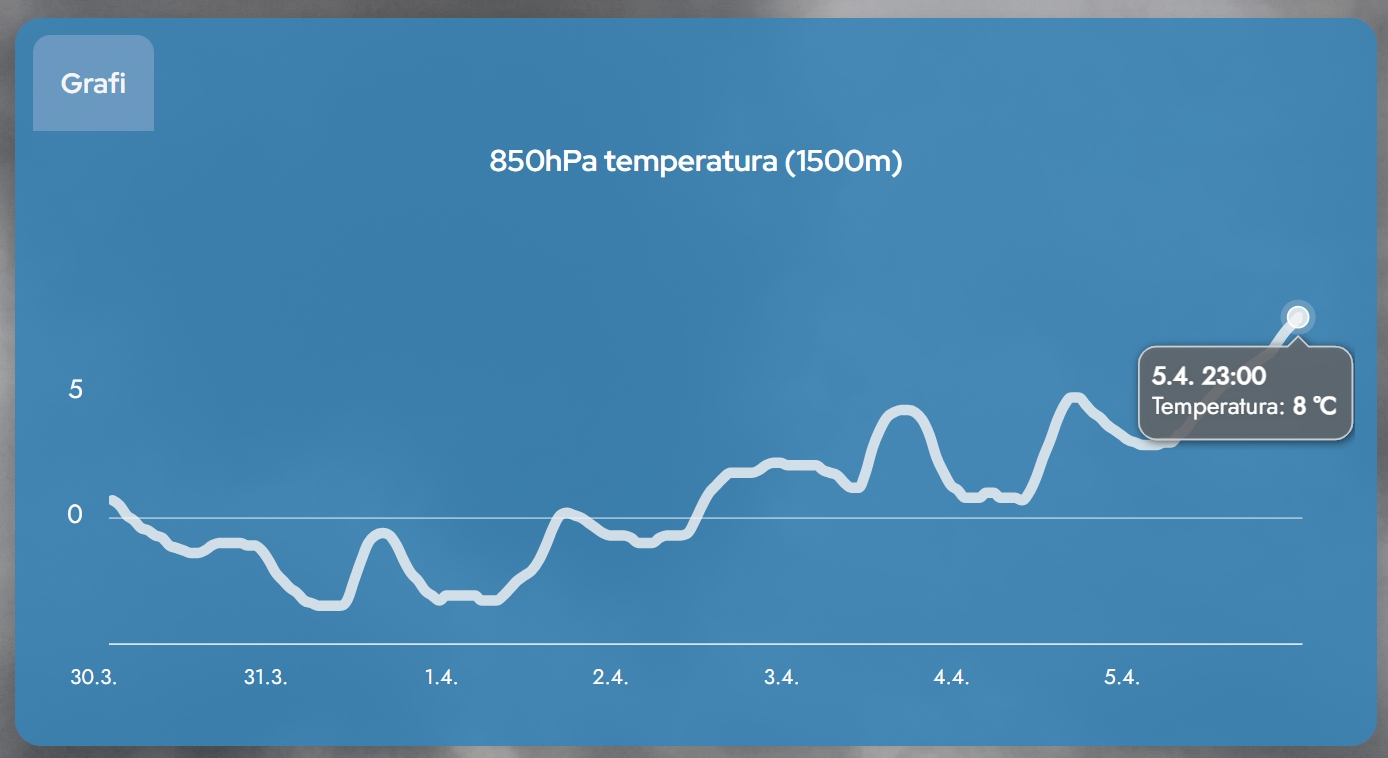 To pomeni, da se bo po 7. ali 8. aprilu verjetno začelo bolj spremenljivo obdobje. Pojavljale se bodo krajevne plohe in morda tudi prve pomladne nevihte, vreme pa ne bo več tako stabilno kot ob koncu tega tedna. Kljub temu izrazite ohladitve za zdaj ni videti – temperature bodo ostale razmeroma visoke, le bolj neenotne.