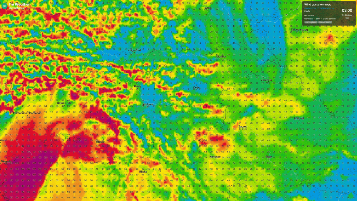 Jutri popoldne in proti večeru se obeta zelo vetrovno dogajanje po Sloveniji. Nad severnim Jadranom in širšim območjem Sredozemlja se bo poglabljal ciklon z izrazito nizkim zračnim tlakom, kar bo nad našimi kraji povzročilo velik tlačni gradient. Posledično se bo krepil veter, ki bo v sunkih dosegal večinoma med 70 in 100 km/h, lokalno pa lahko tudi okoli ali nad 110 km/h. Najbolj izpostavljena bodo odprta in višje ležeča območja ter sever in osrednji del države, kjer lahko veter povzroča težave v prometu, lomi veje in podira drevesa. Proti večeru se bodo razmere še dodatno zaostrile, zato priporočamo previdnost in pravočasno zavarovanje predmetov na prostem.