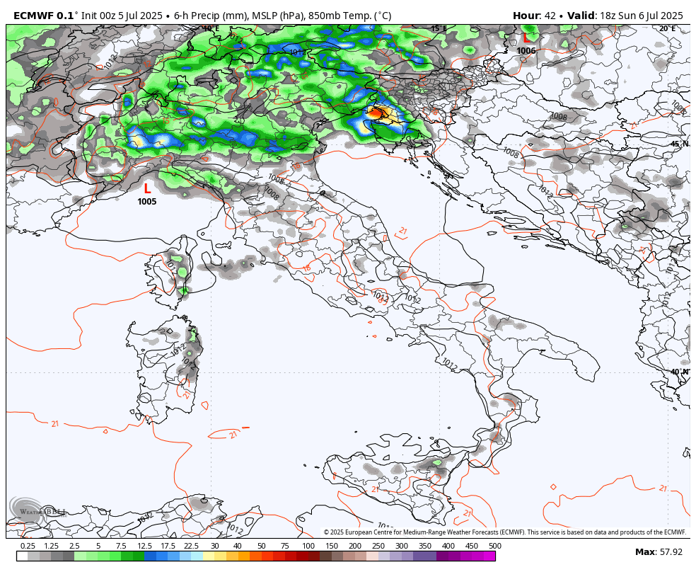Jutri popoldne bo nad Severno Italijo nastal sekundarni ciklon, zato bodo padavine prisotne na našem območju dalj časa, saj bo to upočasnilo prehod vremenske fronte.