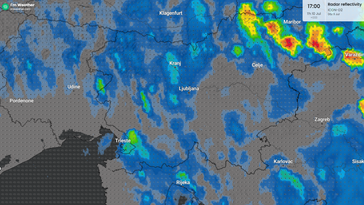 Jutri bodo v popoldanskem času nastajale krajevne plohe in nevihte(vir imweather)